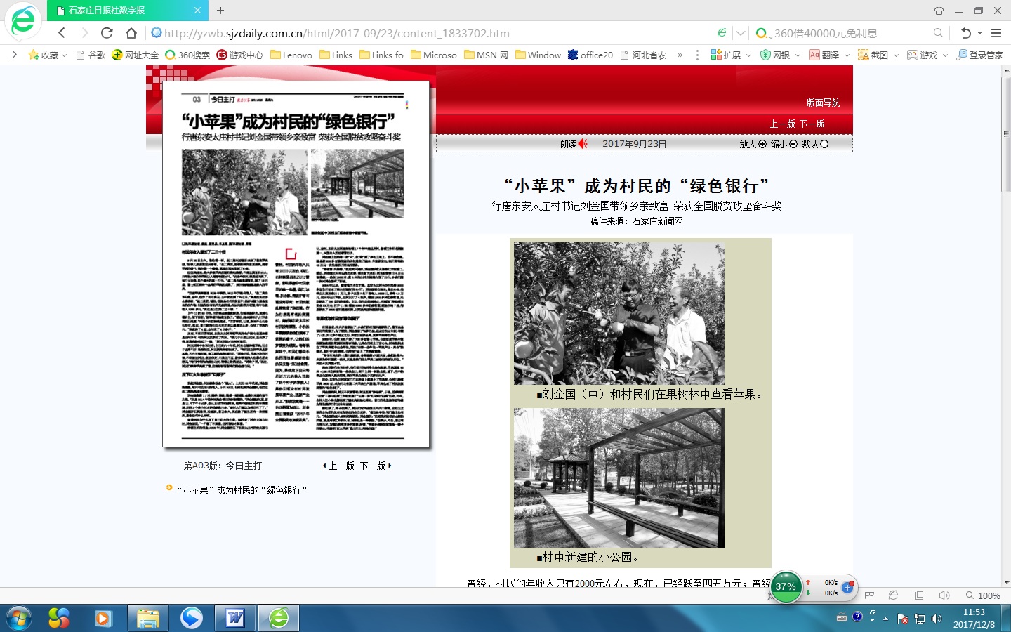 2008年,河北院石家莊果樹研究所蘋果專家馮建忠研究員對安太莊蘋果進(jìn)行了考察,發(fā)現(xiàn)該村原有的蘋果園,由于失去管理能力和先進(jìn)技術(shù)手段措施,外加現(xiàn)代新型稀植大冠樹管理成本高,勞動力嚴(yán)重缺乏,已無經(jīng)濟(jì)效益可言,產(chǎn)業(yè)面臨淘汰境況。經(jīng)過對當(dāng)?shù)氐沫h(huán)境、土壤調(diào)查和產(chǎn)業(yè)布局規(guī)劃后認(rèn)為:利用安太莊地理生態(tài)條件的先天優(yōu)勢,弘揚安太莊蘋果種植傳統(tǒng),采用新的栽培模式,適宜當(dāng)?shù)氐钠贩N是帶領(lǐng)全村脫貧致富、是該村鄉(xiāng)村振興的唯一出路。果樹研究所同當(dāng)時的村班子簽訂幫扶協(xié)議,義務(wù)幫助該村大力發(fā)展蘋果產(chǎn)業(yè),第二年便栽植面積800多畝,并制定了全村發(fā)展3000畝,5年帶動周邊村發(fā)展萬畝的目標(biāo)。