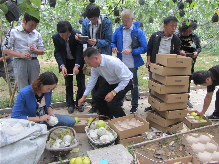 與會(huì)專(zhuān)家考察了位于河北農(nóng)林科學(xué)院石家莊果樹(shù)研究所和趙縣安家莊村的現(xiàn)代農(nóng)業(yè)產(chǎn)業(yè)技術(shù)體系示范基地。國(guó)家梨產(chǎn)業(yè)體系石家莊綜合試驗(yàn)站站長(zhǎng)、河北省農(nóng)林科學(xué)院石家莊果樹(shù)研究所李勇研究員對(duì)示范園的主要情況進(jìn)行了講解;各位專(zhuān)家在現(xiàn)場(chǎng)結(jié)合自身研究的優(yōu)勢(shì)和特色進(jìn)行充分交流。