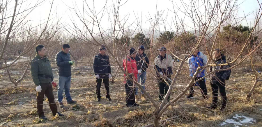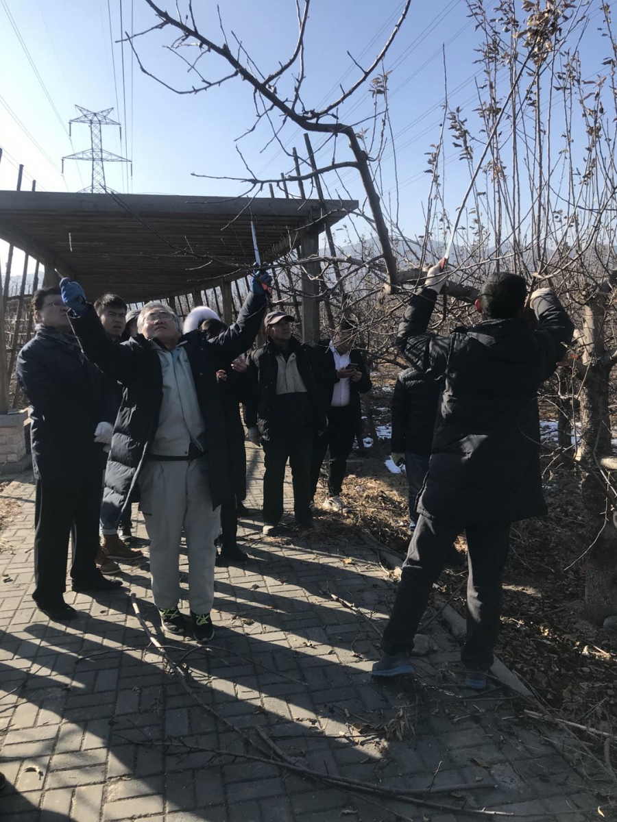 在中國紀(jì)檢監(jiān)察學(xué)院示范園,石果所蘋果、桃樹專家與徐會(huì)連先生對(duì)冬季修剪、樹形改良技術(shù)等進(jìn)行現(xiàn)場交流,對(duì)技術(shù)工人進(jìn)行技術(shù)培訓(xùn)和示范。