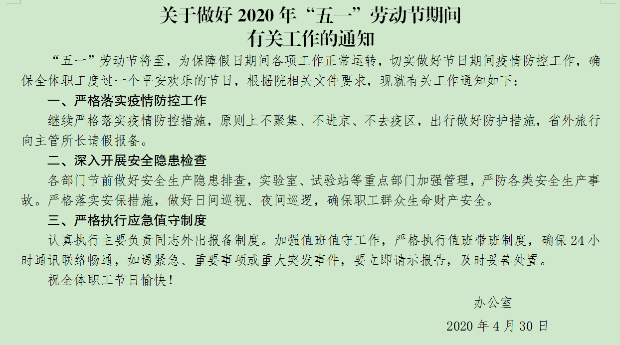關(guān)于做好2020年“五一”勞動節(jié)期間有關(guān)工作的通知
