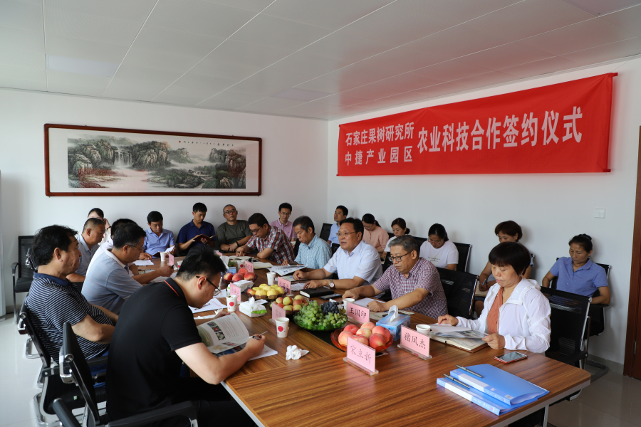 簡(jiǎn)短的歡迎儀式后,石果所總支書記、所長(zhǎng)龐昭進(jìn)介紹了雙方合作的基礎(chǔ)和優(yōu)勢(shì),認(rèn)為本次合作正可謂天時(shí)、地利、人和,今天的簽約儀式是良好的開(kāi)端,能促進(jìn)合作向更深更高的層次發(fā)展。中捷產(chǎn)業(yè)園區(qū)黨委委員、管委會(huì)副主任于連治在講話中強(qiáng)調(diào),此次合作正值園區(qū)難以破解農(nóng)業(yè)如何發(fā)展、如何管理、如何重建技術(shù)服務(wù)體系的難題之時(shí),雙方達(dá)成合作共識(shí),強(qiáng)強(qiáng)聯(lián)合,定能結(jié)出碩果。
