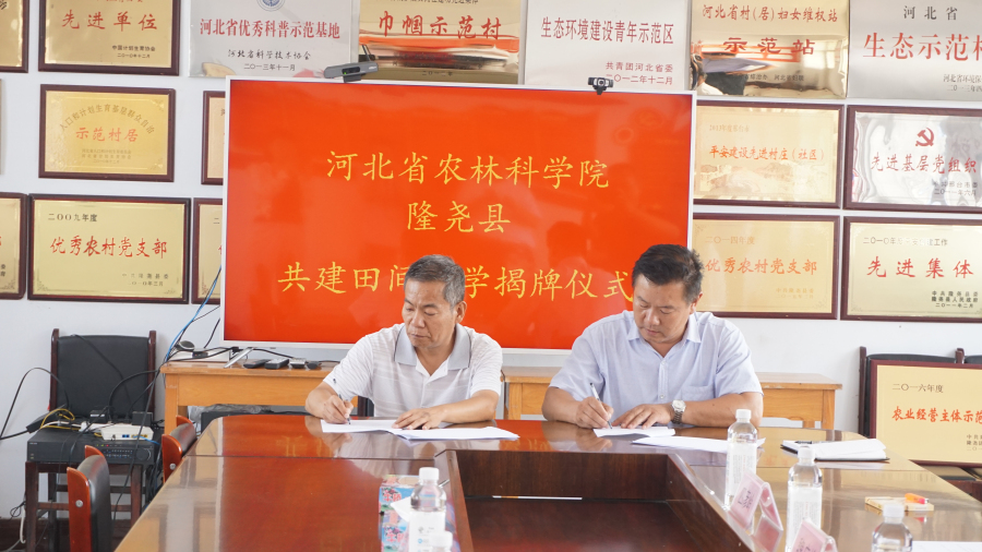 儀式上,魏廣鋒書記代表隆堯縣牛家橋鄉(xiāng)梅莊村介紹了該村蘋果種植發(fā)展歷史,及與石家莊果樹研究所合作設(shè)立田間大學(xué)后的規(guī)劃設(shè)計(jì),愿與石家莊果樹研究所加強(qiáng)合作,配合果樹專家做好技術(shù)指導(dǎo),促進(jìn)栽培模式轉(zhuǎn)變、技術(shù)服務(wù)、示范推廣應(yīng)用等工作的開展。馮建忠副所長表示,石家莊果樹研究所今后將在技術(shù)培訓(xùn)、人才培養(yǎng)等方面給予該田間大學(xué)全力支持,并希望以此次簽約為契機(jī),未來進(jìn)一步加強(qiáng)溝通交流,拓寬合作領(lǐng)域,促進(jìn)科技成果轉(zhuǎn)化推廣,把隆堯縣蘋果產(chǎn)業(yè)做大做強(qiáng)。