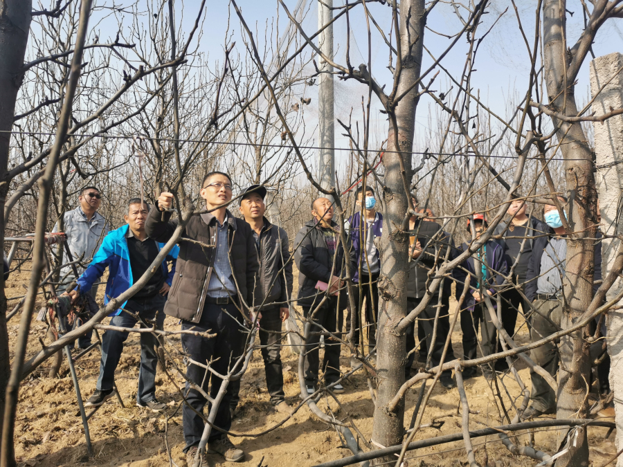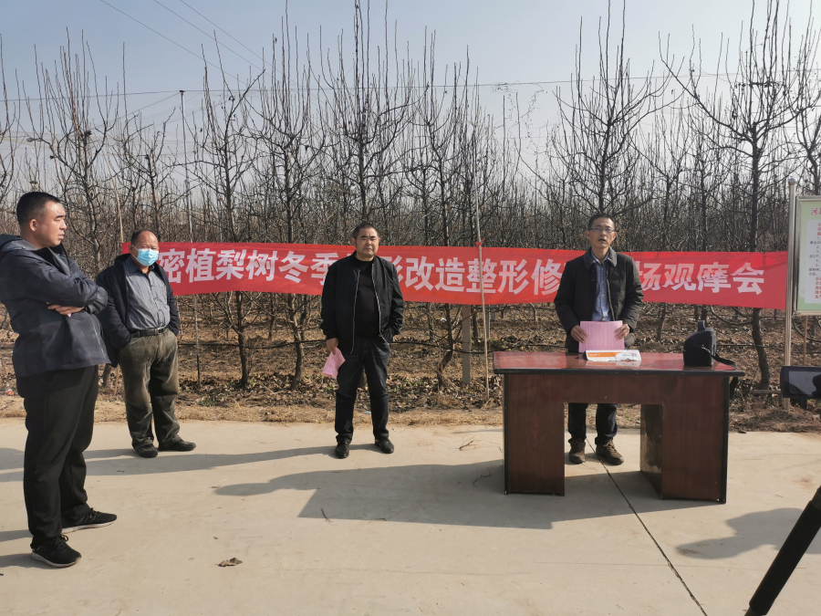 2020年11月13日,我所院市合作項目“阜城縣特色梨提質增效技術示范”團隊赴阜城縣中捷林業(yè)科技有限公司舉辦了密植梨樹冬季樹形改造整形修剪現場觀摩會。