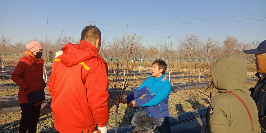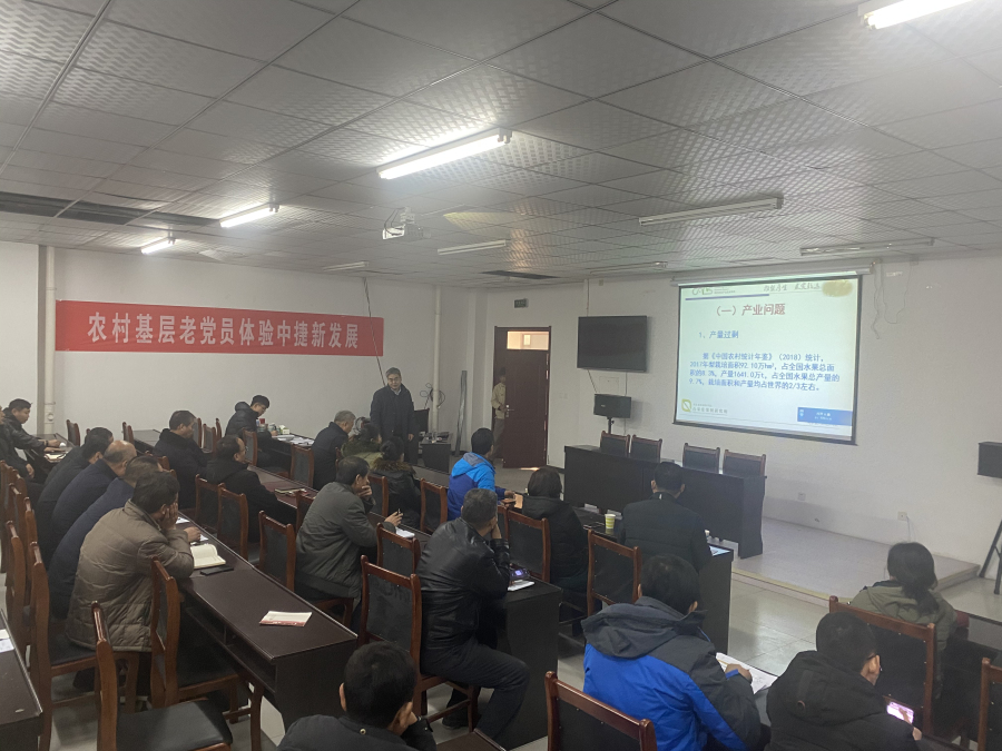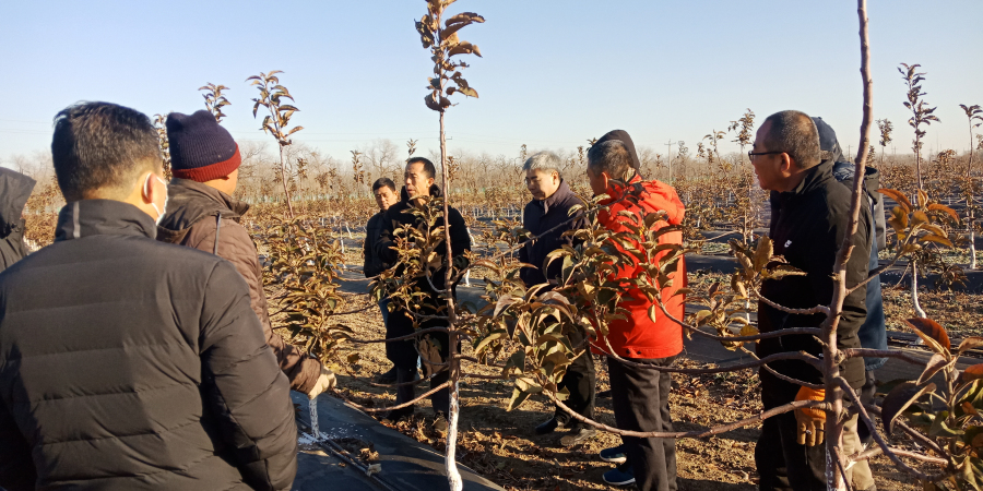 12月16日,梨專家李勇、蘋果專家徐國良、李杏專家武曉紅等以PPT形式進行了理論知識培訓,分別從新品種介紹、目前采用的樹形及樹形培養(yǎng)、病蟲草害防治、土肥水管理技術等方面進行了詳細講解。12月17日,到田間實地進行果樹冬剪技術指導,對蘋果樹、梨樹、桃樹、杏樹分別進行示范修剪,邊修剪邊講解技術要點以及來年樹體構建的要求及應注意的事項。