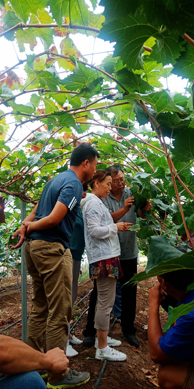 我所葡萄研究室專家、院市合作項(xiàng)目組負(fù)責(zé)人褚鳳杰研究員,同饒陽縣農(nóng)業(yè)農(nóng)村局副局長張旭光、技術(shù)站站長張鐵兵、科教站站長耿青松以及葡萄技術(shù)骨干等十余人,于2021年8月26至27日前往饒陽縣官廳鎮(zhèn)王崗村衡健農(nóng)業(yè)科技有限公司;尹村鎮(zhèn)北流滿村郝威葡萄園、尹村鎮(zhèn)高村葡萄;留楚鎮(zhèn)東崔村帥佳家庭農(nóng)場;留楚鄉(xiāng)影林村的新饒農(nóng)業(yè)公司;五公鎮(zhèn)南馬村甄云飛葡萄園;同岳鎮(zhèn)小康農(nóng)業(yè)科技有限公司葡萄園、同岳鎮(zhèn)康氏農(nóng)業(yè)科技有限公司等十余個(gè)葡萄種植園,針對(duì)設(shè)施葡萄生長存在問題,進(jìn)行現(xiàn)場調(diào)研與技術(shù)指導(dǎo),并為果農(nóng)解答各類疑難問題。