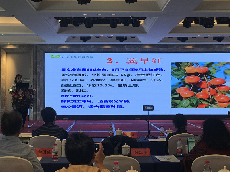 大會(huì)上,李杏研究室主任武曉紅做杏新品種及關(guān)鍵栽培技術(shù)報(bào)告,展示了我所選育的杏新品種‘金荷’及‘冀早紅’,引起了與會(huì)專家及農(nóng)企的高度關(guān)注。會(huì)后,武曉紅主任一行實(shí)地參觀了山東省果樹研究所金牛山示范基地,并與姜遠(yuǎn)茂、張安寧專家團(tuán)隊(duì)進(jìn)行了深入交流,今后擬在果樹樹形構(gòu)建、土壤與養(yǎng)分管理等方面開展合作。
