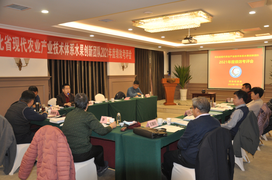 2022年1月11日,河北省現(xiàn)代農(nóng)業(yè)產(chǎn)業(yè)技術體系水果創(chuàng)新團隊2021年度績效考評會在石家莊召開。會議邀請了河北省農(nóng)業(yè)農(nóng)村廳、河北科技大學、河北省農(nóng)林科學院、河北農(nóng)業(yè)大學、河北省特色產(chǎn)業(yè)協(xié)會、石家莊澤桑葡萄園區(qū)等單位專家組成考評小組,對水果創(chuàng)新團隊崗位專家和試驗站長2021年工作進行績效考核。河北省農(nóng)業(yè)農(nóng)村廳二級巡視員王旗、科教處副處長鄭福祿、特色產(chǎn)業(yè)處副處長趙少波、河北省農(nóng)林科學院石家莊果樹研究所龐昭進所長等領導蒞臨指導。創(chuàng)新團隊首席專家、河北省農(nóng)林科學院副院長張建軍,各崗位專家、試驗站站長和團隊成員等共40余人參加了會議。龐昭進所長致歡迎詞。