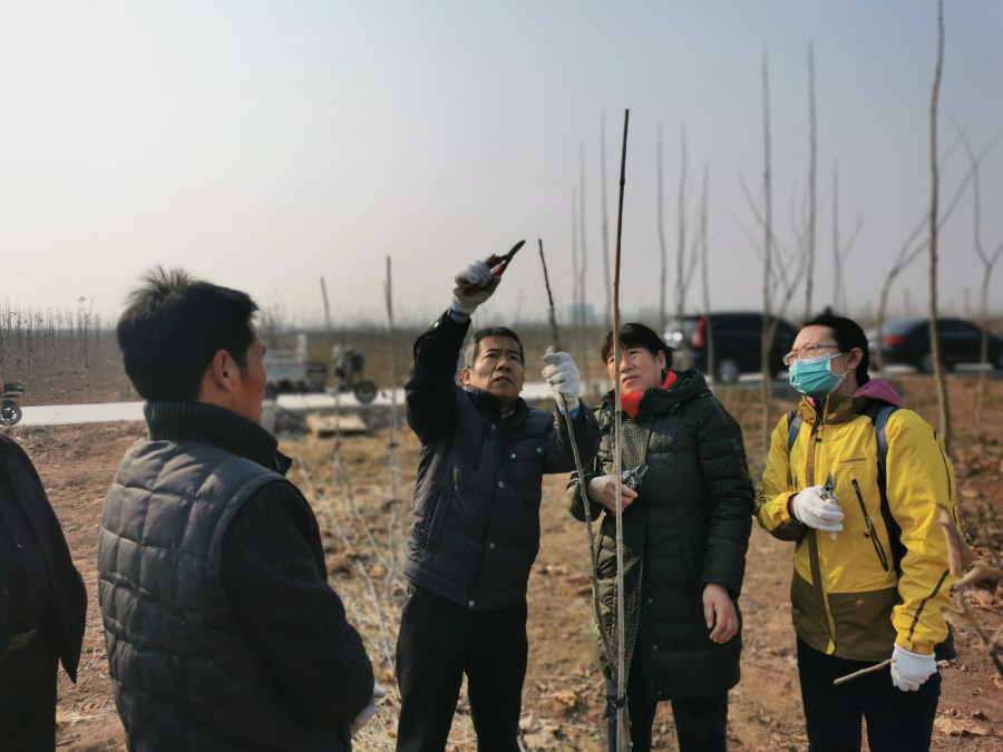 近日,蘋果育種研究室團(tuán)隊(duì)赴邢臺(tái)任澤區(qū)“河北豐柰農(nóng)業(yè)開發(fā)有限公司”果樹園區(qū),就春季蘋果樹修剪及田間管理等內(nèi)容,為當(dāng)?shù)毓r(nóng)及技術(shù)人員進(jìn)行了集中培訓(xùn)和現(xiàn)場(chǎng)指導(dǎo)。河北豐奈農(nóng)業(yè)有限公司種植蘋果新品種600畝,其中包括石家莊果樹研究所自育新品種新優(yōu)系3個(gè),已作為我所蘋果新品種的區(qū)試基地。