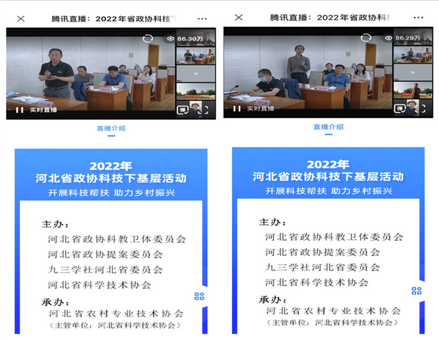 5月17日上午,馬之勝、徐國良研究員參加了由省政協(xié)、九三學(xué)社、省科協(xié)主辦,省農(nóng)村專業(yè)技術(shù)協(xié)會承辦的“開展科技幫扶,助力鄉(xiāng)村振興”2022年河北省政協(xié)科技下基層遠程會診活動。