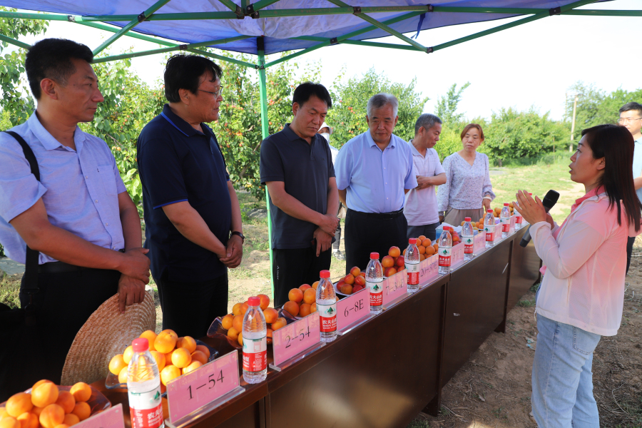 2022年5月25日,省農(nóng)業(yè)農(nóng)村廳二級巡視員、特色產(chǎn)業(yè)處處長王旗,河北省農(nóng)林科學院副院長、蘋果創(chuàng)新團隊首席專家張建軍等一行8人到我所參加省現(xiàn)代農(nóng)業(yè)產(chǎn)業(yè)體系蘋果創(chuàng)新團隊杏李崗位舉辦的“鮮食杏新品種”觀摩會。