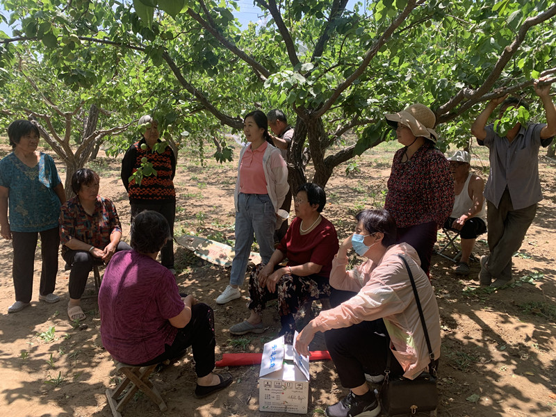團隊一行先后來到紀家寨新品種示范點、杏優(yōu)質(zhì)安全生產(chǎn)技術示范基地及巨鹿縣杏產(chǎn)業(yè)協(xié)會,詳細了解了今年鮮杏產(chǎn)量、價格以及銷售情況,重點詢問了我所自育杏品種的種植效益。整體來看,受疫情、天氣及種植結構調(diào)整等多方面因素的影響,今年鮮杏批發(fā)行情較好,價格較往年提高了約50%。結合當?shù)厣a(chǎn)現(xiàn)狀,武曉紅主任著重講解了杏樹采收后管理措施,劉志琨實地示范了幼樹夏季整形技術。