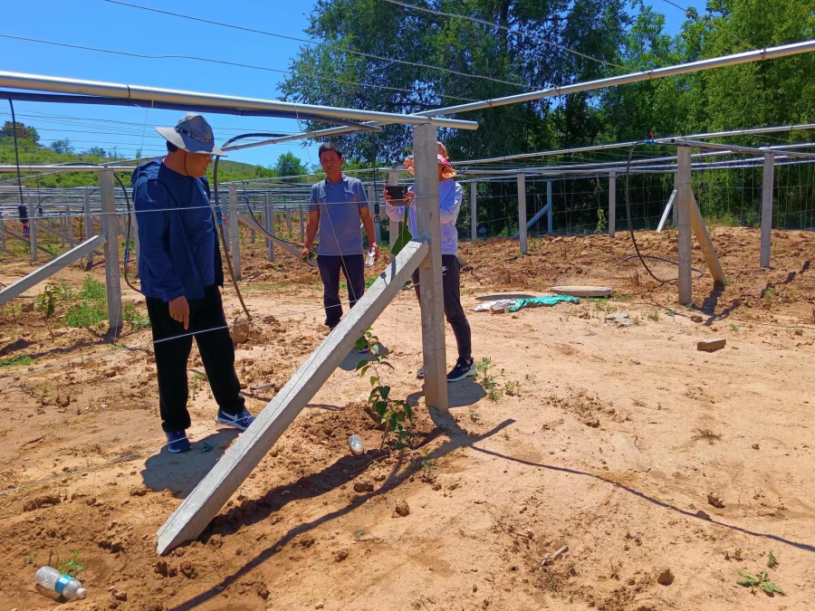 6月24日,我所專家團隊赴行唐縣口頭鎮(zhèn)西寺莊村軟棗獼猴桃示范基地及口頭鎮(zhèn)東寺莊獼猴桃廊架栽培實驗基地進行調(diào)研指導。專家一行查看東寺莊廊架栽培基地,現(xiàn)場為當?shù)胤N植戶講解了廊架栽培技術要點及夏季修剪技術要領;在西寺莊村軟棗獼猴桃基地,為提高幼苗成活率,向果農(nóng)講解了生草保墑,高噴降溫等栽培管理措施,當?shù)毓r(nóng)受益匪淺。