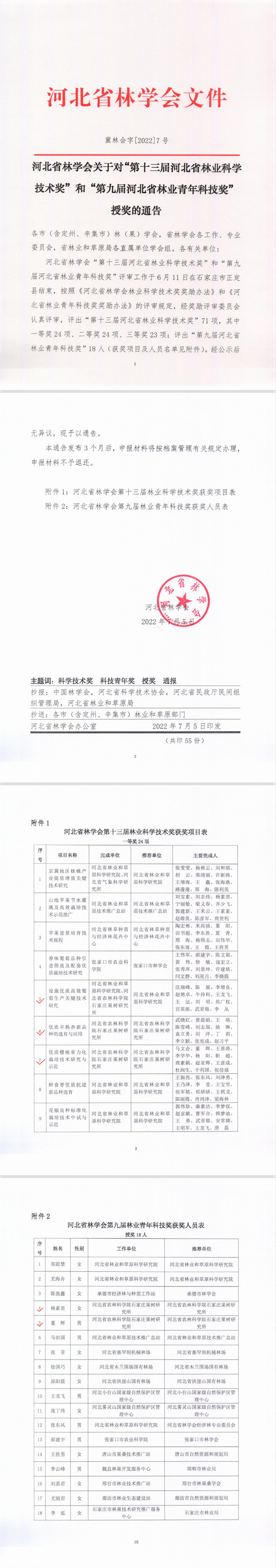 根據(jù)河北省林學(xué)會(huì)關(guān)于對(duì)“第十三屆河北省林業(yè)科學(xué)技術(shù)獎(jiǎng)“和“第九屆河北省林業(yè)青年科技獎(jiǎng)”授獎(jiǎng)的通告獲悉,我所喜獲兩個(gè)獎(jiǎng)項(xiàng)雙豐收。