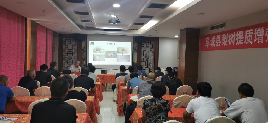 項目團隊經過近年來科技服務成效,針對阜城縣密植梨樹存在的樹體過高過大、出現郁閉、品質下降等問題,總結出一套密植梨樹樹形改造的樹體控制配套技術,生產示范取得初步成效。