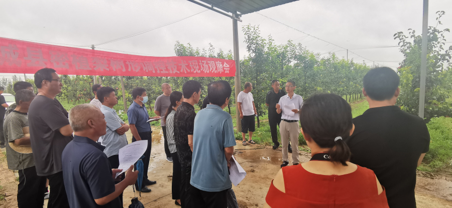 2022年7月6日,我所院市合作“阜城縣特色梨提質增效技術示范”項目團隊在阜城縣召開了“密植梨樹形調控技術現場觀摩會”。