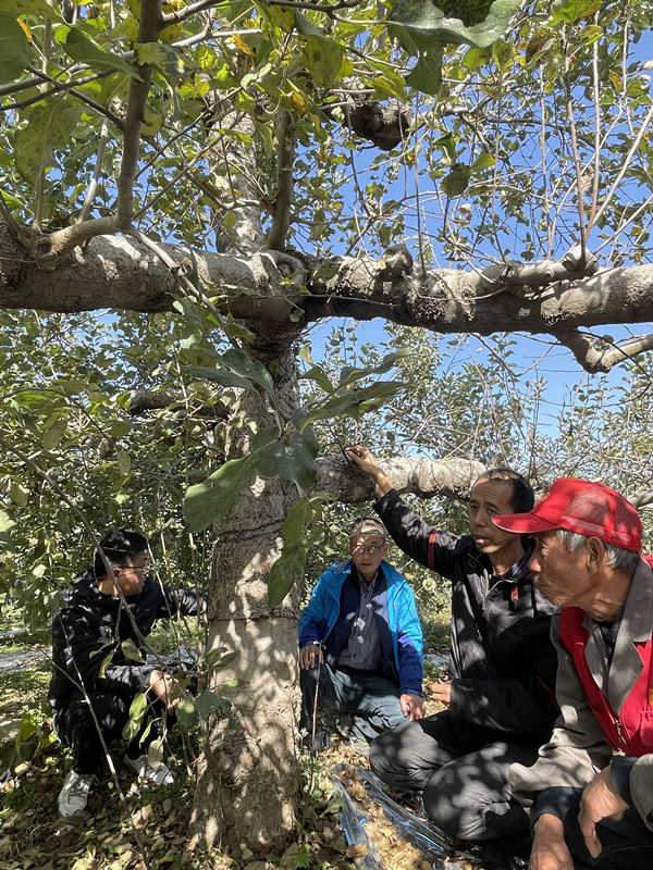 2022年10月31日,植保研究室徐國良研究員同董輝副所長、馬文會(huì)研究員等共同前往井陘縣洛陽村冀農(nóng)珍果莊園,圍繞“果實(shí)采摘和貯藏”“秋季增施基肥”“冬季越冬防寒”等當(dāng)前管理核心問題對莊園蘋果園進(jìn)行了現(xiàn)場指導(dǎo),并就明年進(jìn)一步提升蘋果品質(zhì)提出了計(jì)劃安排。