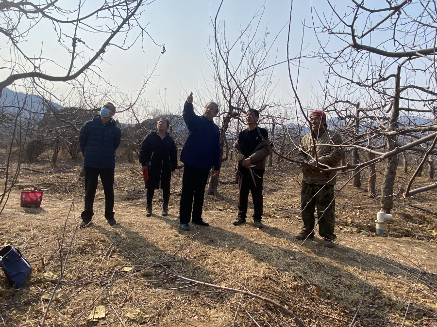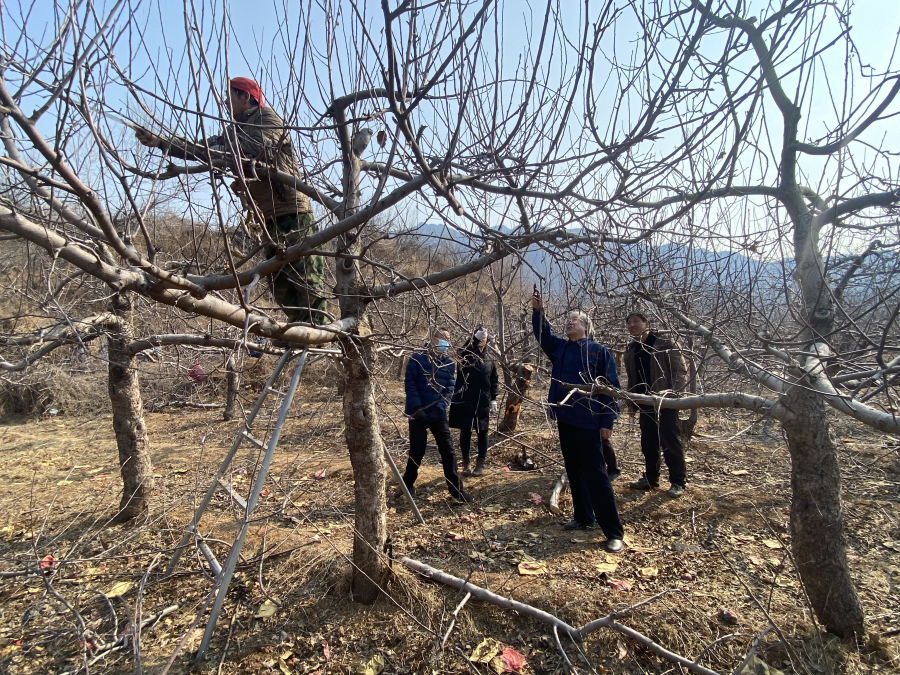 2023年2月22日,蘋果栽培團(tuán)隊(duì)杜紀(jì)壯研究員帶隊(duì)到平山縣元坊村進(jìn)行該村蘋果產(chǎn)業(yè)發(fā)展規(guī)劃及蘋果老果園高光效樹形改造技術(shù)指導(dǎo)。