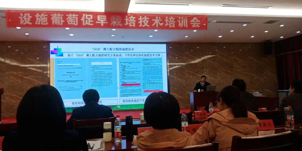葡萄研究室團(tuán)隊(duì)成員陪同王海波研究員參觀了葡萄核心示范園,隨后雙方介紹了團(tuán)隊(duì)研究現(xiàn)狀,并就葡萄育種、化肥的有機(jī)替代、田間生草、成果轉(zhuǎn)化、行業(yè)現(xiàn)狀等方面進(jìn)行了深入交流。一行人到研究所位于饒陽的葡萄示范基地參觀,王海波研究員受邀在設(shè)施葡萄促早栽培技術(shù)培訓(xùn)會(huì)上做報(bào)告。報(bào)告內(nèi)容切合實(shí)際、深入淺出,參會(huì)的當(dāng)?shù)剞r(nóng)戶和企業(yè)技術(shù)人員均表示受益匪淺。