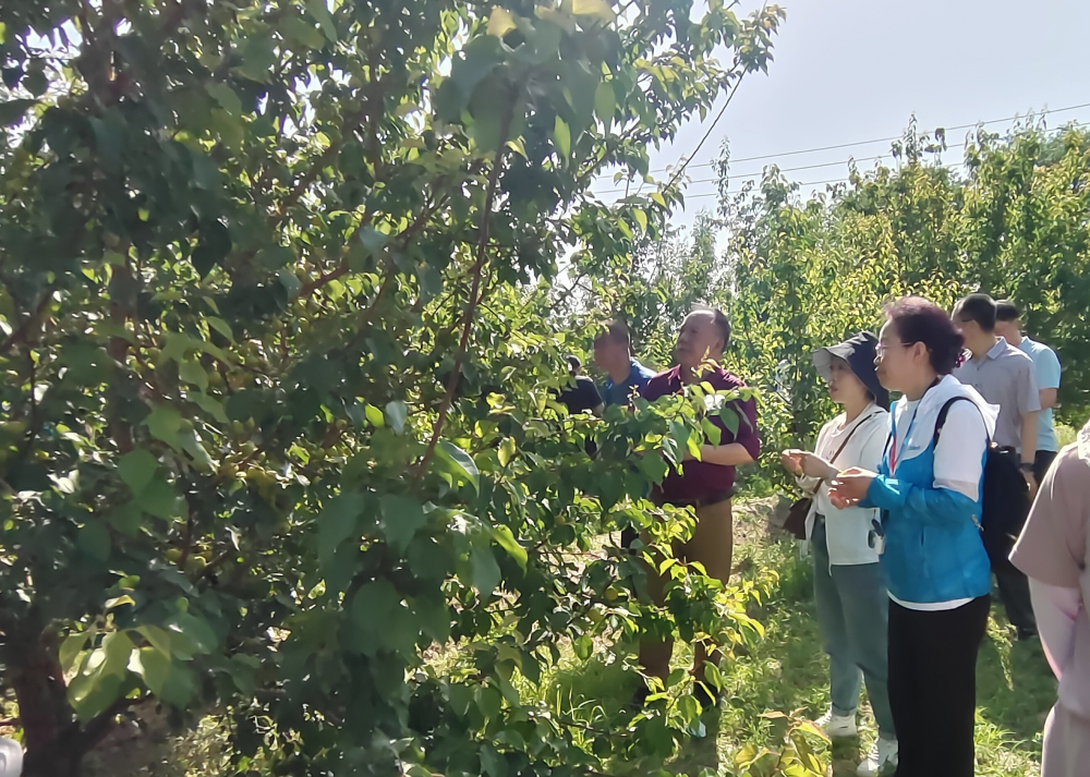 學術報告結束后,全體人員觀摩了托克遜杏生產(chǎn)基地。托克遜杏樹種植面積9.75萬畝,結果面積6.88萬畝,被譽為“中國早熟杏之鄉(xiāng)”。當?shù)貥O早熟杏品種單一化、規(guī)?;?,政府宣傳力度大,鮮果產(chǎn)值較高,且三產(chǎn)融合發(fā)展,極大提升了當?shù)亟?jīng)濟增速。托克遜杏成熟時間與我省中南部相近,眾多先進經(jīng)驗可供我省借鑒。
