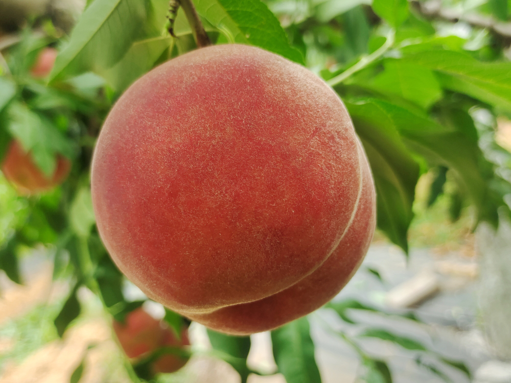 專家組一致認(rèn)為:‘美葆’與對(duì)照品種‘大久保’熟期相近,具有‘大久保’的風(fēng)味品質(zhì),但無‘大久保’著色差、果實(shí)易軟、采前落果嚴(yán)重的缺點(diǎn)。與‘大久保’相比,‘美葆’樹勢(shì)中庸,果個(gè)大,平均單果重362g,果形端正,果面80%以上著鮮艷紅色,果頂凹,硬度大,硬溶質(zhì),離核,可溶性固形物含量13.6%,風(fēng)味甜,平均畝產(chǎn)2200kg以上,采前落果輕,無需“采青”,可作為‘大久保’的替代品種或熟期配套品種。