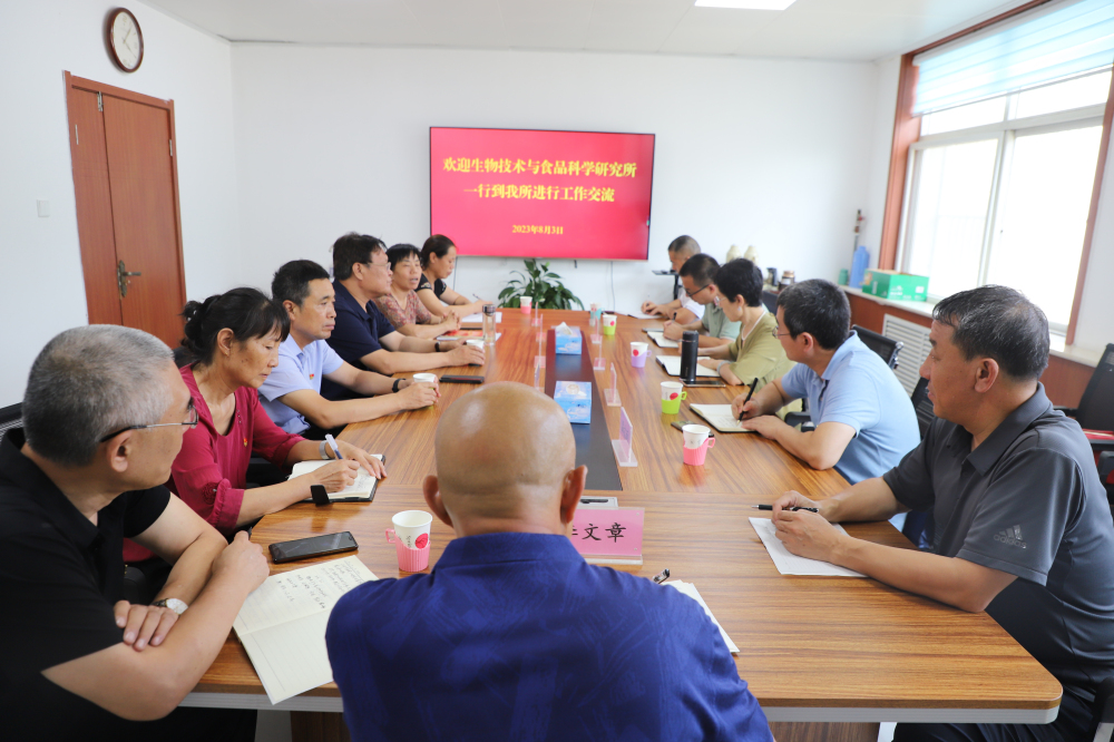 2023年8月3日,生物技術(shù)與食品科學(xué)研究所黨總支書記陳保華一行到我開展工作交流。調(diào)研座談?dòng)?/span>我所黨總支書記褚鳳杰主持,褚鳳杰對(duì)陳保華一行的到來表示歡迎,介紹了研究所黨總支情況及研究所在科技創(chuàng)新、科技服務(wù)、人才建設(shè)、制度管理等方面基本情況。雙方就黨建、科研、管理等工作進(jìn)行了交流,圍繞“結(jié)合科研抓黨建,抓好黨建促科研”工作方法展開探討。陳保華表示,此次座談收獲頗豐,今后會(huì)加強(qiáng)與石家莊果樹研究所的溝通交流,尋找合作機(jī)會(huì),共同進(jìn)步。會(huì)后,陳保華一行參觀了石家莊果樹研究所科技展廳。