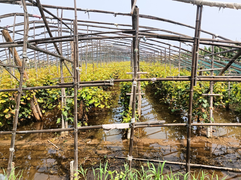 饒陽縣葡萄棚室坍塌、損毀嚴重,初步統(tǒng)計,此次受災葡萄棚室約15000個,面積約50000畝,目前仍有部分棚室積水較深。因饒陽葡萄栽培以暖棚為主,葡萄已上市,果農(nóng)今年果品經(jīng)濟損失稍輕,但部分葡萄樹體經(jīng)過長時間水浸,樹勢難以恢復,明年可能會受到較大影響。