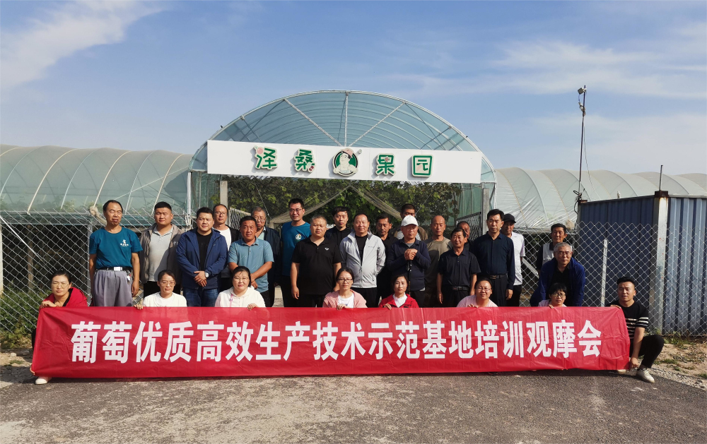 2023年10月10日,葡萄研究室、國家葡萄產(chǎn)業(yè)技術(shù)體系石家莊綜合試驗站在晉州澤桑農(nóng)業(yè)合作社澤桑果園舉辦了葡萄優(yōu)質(zhì)高效生產(chǎn)技術(shù)示范基地培訓(xùn)觀摩會。觀摩會共有來自饒陽、定州、晉州、滿城等示范縣的種植大戶和相關(guān)工作人員40余人參加。
