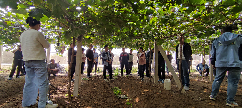 觀摩會上,研究室主任、試驗站站長楊麗麗研究員首先介紹了河北省葡萄產(chǎn)業(yè)概況、澤桑果園采用的葡萄優(yōu)質(zhì)高效生產(chǎn)技術(shù);隨后,參觀了澤桑果園陽光玫瑰葡萄優(yōu)質(zhì)高效生產(chǎn)示范園區(qū);最后,與會人員就陽光玫瑰的栽培技術(shù)、機械化應(yīng)用、棚室建設(shè),以及市場變化、銷售渠道、品牌建設(shè)等方面進行了交流。
