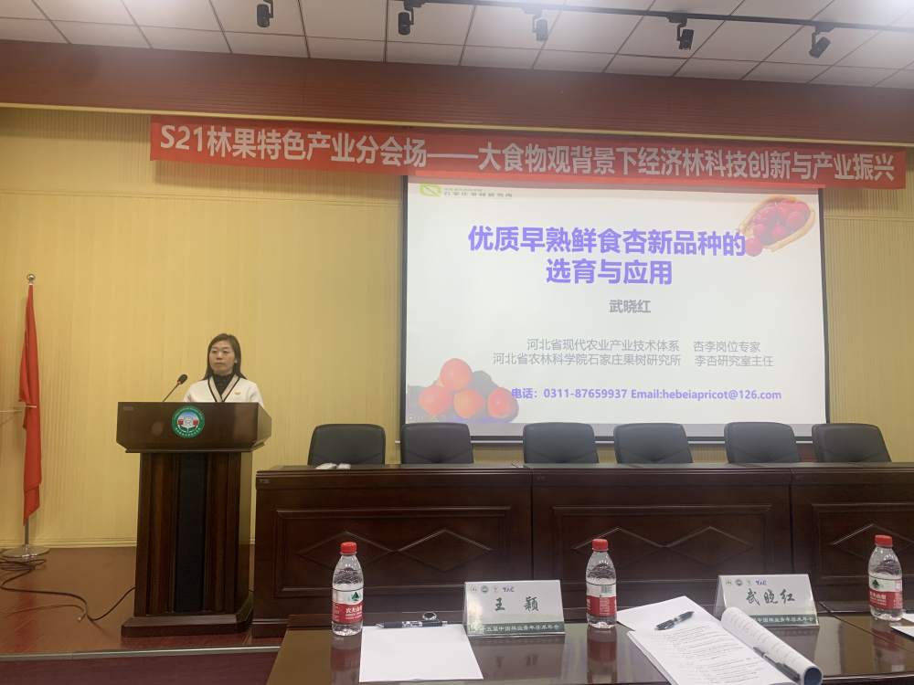 本次大會共設(shè)28個(gè)分會場,受專題21“林果特色產(chǎn)業(yè)”分會場主席烏云塔娜研究員邀請,李杏研究室主任武曉紅副研究員攜團(tuán)隊(duì)成員參加了此次大會。本分會場以“大食物觀背景下經(jīng)濟(jì)林科技創(chuàng)新與產(chǎn)業(yè)振興”為主題,匯集了林果相關(guān)領(lǐng)域的專家、學(xué)者的31個(gè)學(xué)術(shù)報(bào)告。會上武曉紅主任做了題為“優(yōu)質(zhì)早熟鮮食杏新品種的選育與應(yīng)用”專題學(xué)術(shù)報(bào)告,介紹了河北省杏產(chǎn)業(yè)發(fā)展現(xiàn)狀與問題,就團(tuán)隊(duì)在種質(zhì)資源系統(tǒng)評價(jià)、早熟杏育種技術(shù)創(chuàng)新、新品種選育、提質(zhì)增效配套栽培技術(shù)集成與產(chǎn)業(yè)振興等方面進(jìn)行了匯報(bào)。