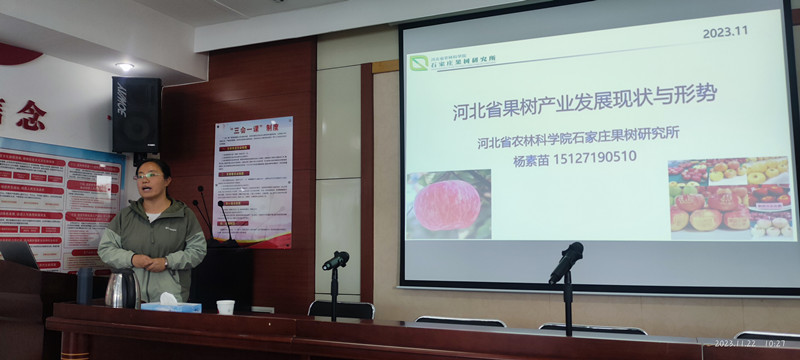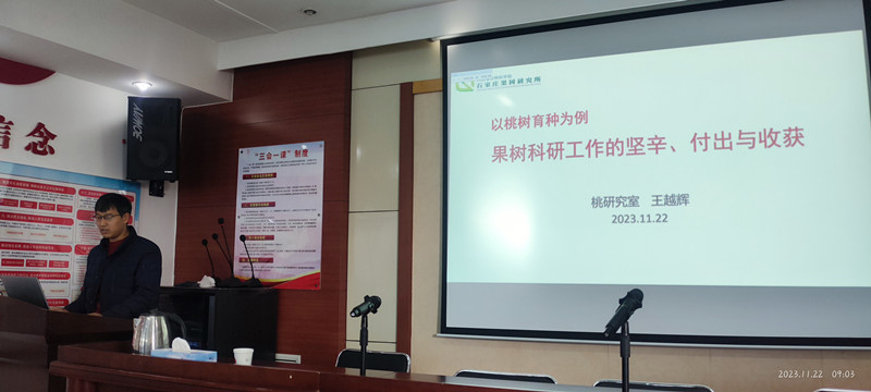 馬之勝研究員介紹了科研及農業(yè)科研的特點,強調了科研人員應掌握的一些基本功及常用的科研思維方法;徐國良研究員分享了從事科技服務的一些經歷和心得體會,表示下基層得做到腳勤、嘴勤、眼勤、手勤;褚鳳杰書記結合石果所發(fā)展歷程,講述了馬希滿、劉承晏、肖海峰、周志芳等研究所老一輩科學家的故事經歷,令人動容;鄢新民副所長從精準定位、確立目標、調查研究、分析總結等方面進行了職業(yè)規(guī)劃和職業(yè)操守指導,給出了一些意見和建議;王越輝研究員詳細講解了桃育種的整體流程,指出育種目標來源于產業(yè)需求,進行產業(yè)調研十分必要;楊素苗副研究員對河北省果樹產業(yè)發(fā)展現狀與形勢進行了介紹,并分享了一些工作和生活中的感悟體會。