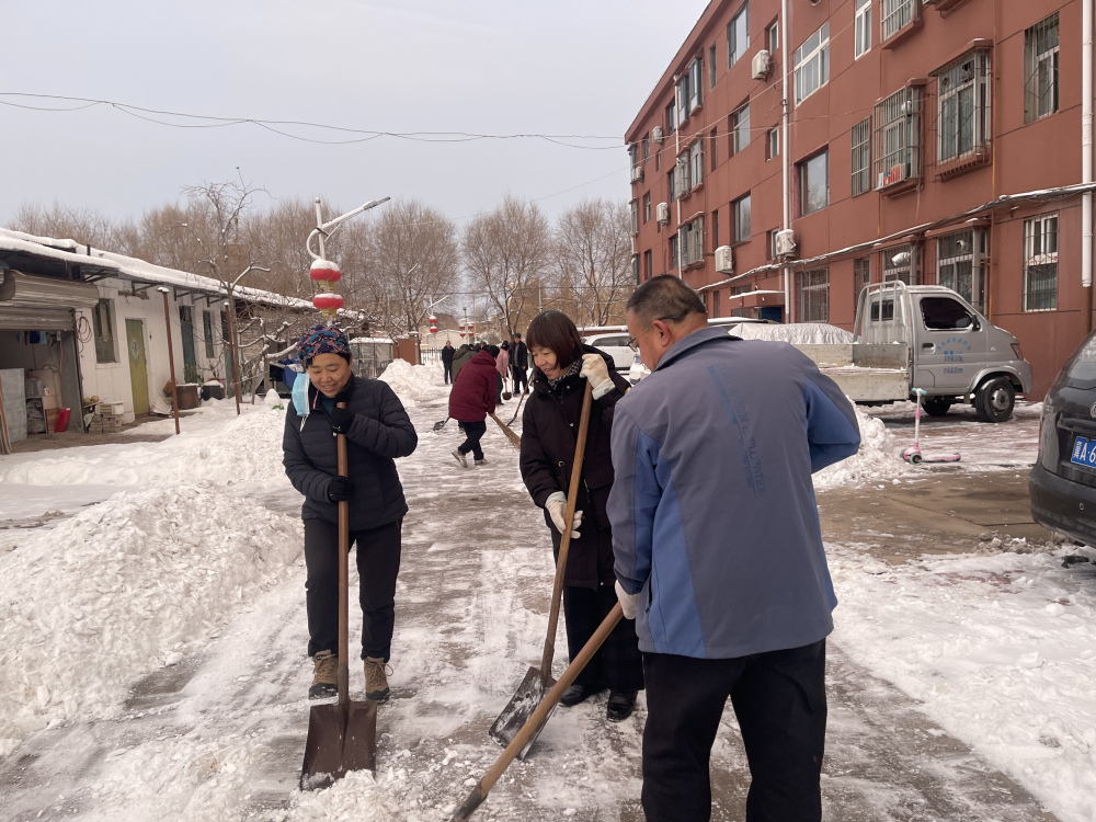 近日石家莊市出現(xiàn)持續(xù)低溫降雪天氣。降雪持續(xù)時(shí)間較長(zhǎng)加之晝夜溫差使部分道路結(jié)冰,嚴(yán)重影響干部職工與居民出行。我所積極響應(yīng)省直工委《關(guān)于開展清雪除冰志愿服務(wù)活動(dòng)的倡議書》號(hào)召,組織黨員干部開展了“清掃積雪暖人心”志愿服務(wù)活動(dòng)。