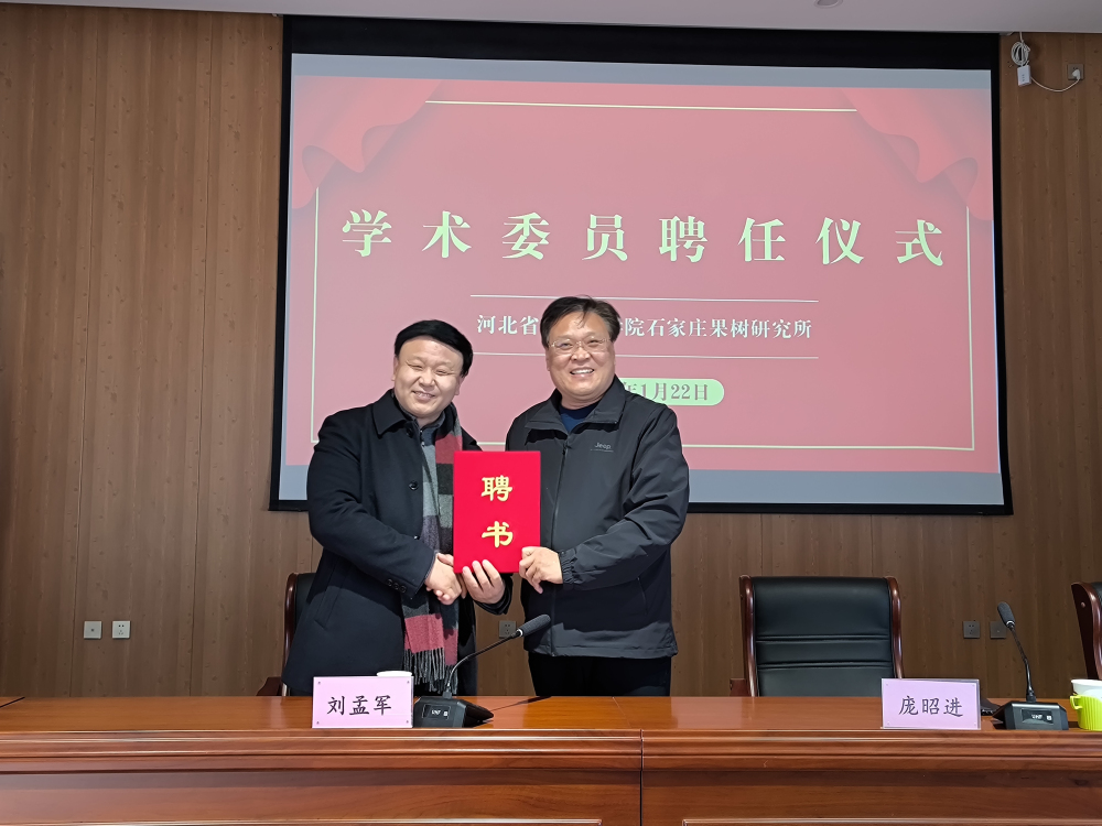2024年1月22日,國家桃產(chǎn)業(yè)技術(shù)體系棗栽培技術(shù)崗位科學(xué)家、河北農(nóng)業(yè)大學(xué)園藝學(xué)院院長,博士生導(dǎo)師劉孟軍教授到我所調(diào)研交流。并受聘為河北省農(nóng)林科學(xué)院石家莊果樹研究所學(xué)術(shù)委員會(huì)委員,龐昭進(jìn)所長為劉教授頒發(fā)聘書。