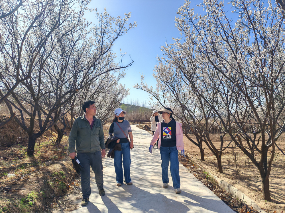 張家口市崇禮區(qū)仁用杏栽植面積2.3萬(wàn)公頃,杏仁產(chǎn)量1200噸,是當(dāng)?shù)毓r(nóng)經(jīng)濟(jì)來(lái)源的重要組成部分。但是,由于栽培品種豐產(chǎn)性差,且經(jīng)常受倒春寒影響,導(dǎo)致單產(chǎn)很低。為解決當(dāng)?shù)仉y題,在崇禮區(qū)林業(yè)和草原局趙秀峰高級(jí)農(nóng)藝師的陪同下,團(tuán)隊(duì)一行來(lái)到南地村進(jìn)行實(shí)地調(diào)研。團(tuán)隊(duì)為當(dāng)?shù)貛?lái)了晚花豐產(chǎn)仁用杏新品種張仁一號(hào)和京仁3號(hào)進(jìn)行區(qū)域試驗(yàn);針對(duì)晚霜危害問(wèn)題,武曉紅指出可通過(guò)噴布防晚霜制劑、應(yīng)用煙霧發(fā)生裝置及遮陽(yáng)推遲花期技術(shù)等方式,提高仁用杏防凍能力,減輕霜凍危害程度。