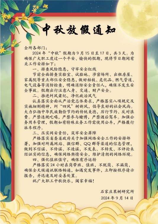 2024年中秋節(jié)放假通知