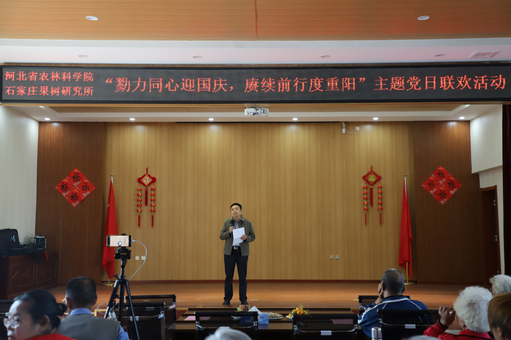 聯(lián)歡活動(dòng)上,鄢新民副所長(zhǎng)代表全體干部職工為退休職工們送上深深祝福,向退休職工介紹了研究所近期發(fā)展情況及取得業(yè)績(jī)。他表示,老一輩科技專家、科研工作者是石果所的寶貴財(cái)富,研究所現(xiàn)今取得的發(fā)展成就離不開老同志們打下的堅(jiān)實(shí)基礎(chǔ)。老一輩科學(xué)家“愛國(guó)奉獻(xiàn),艱苦創(chuàng)業(yè),勤奮務(wù)實(shí),淳樸善良”的優(yōu)良傳統(tǒng)和“守正創(chuàng)新,開拓進(jìn)取,探索求真,協(xié)同育人”的科學(xué)家精神值得青年科技工作者學(xué)習(xí)和繼承。