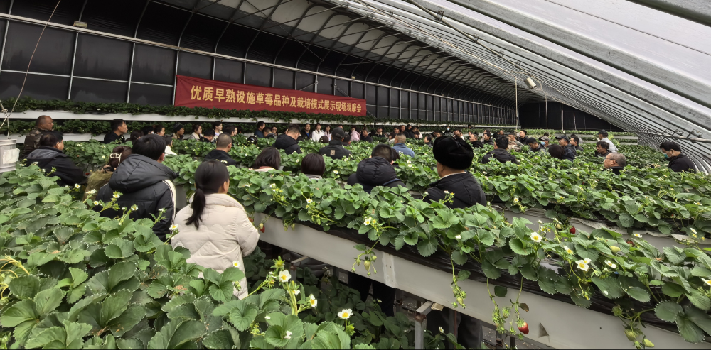為進(jìn)一步加快早熟設(shè)施草莓品種及栽培模式技術(shù)示范推廣應(yīng)用,提高草莓種植經(jīng)濟(jì)效益,促進(jìn)草莓產(chǎn)業(yè)高質(zhì)量發(fā)展,我所聯(lián)合石家莊市農(nóng)業(yè)農(nóng)村局,于2024年12月12日舉辦了優(yōu)質(zhì)早熟設(shè)施草莓品種及栽培模式展示現(xiàn)場觀摩會。河北省農(nóng)業(yè)農(nóng)村廳特色產(chǎn)業(yè)處、石家莊市農(nóng)業(yè)農(nóng)村局、石家莊市各區(qū)縣農(nóng)業(yè)農(nóng)村局相關(guān)領(lǐng)導(dǎo),草莓生產(chǎn)、育苗、銷售等企業(yè)、基地、合作社、種植大戶代表,《燕趙農(nóng)村報(bào)》等媒體記者及我所領(lǐng)導(dǎo)班子及相關(guān)科技人員100余人參會。