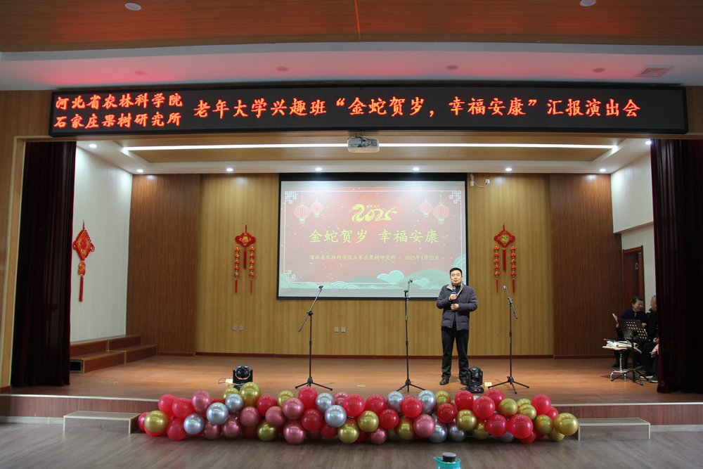“祥龍辭歲福澤厚,靈蛇納祥好運來;蛇舞新春祥瑞繞,齊聚一堂賀新春”。2025年1月22日上午,我所退休支部成功舉辦了老年大學興趣班“金蛇賀歲,幸福安康”匯報演出會,所長鄢新民、副所長楊素苗應邀出席并觀看了演出。所長鄢新民代表所領導班子發(fā)表了熱情洋溢的致辭。