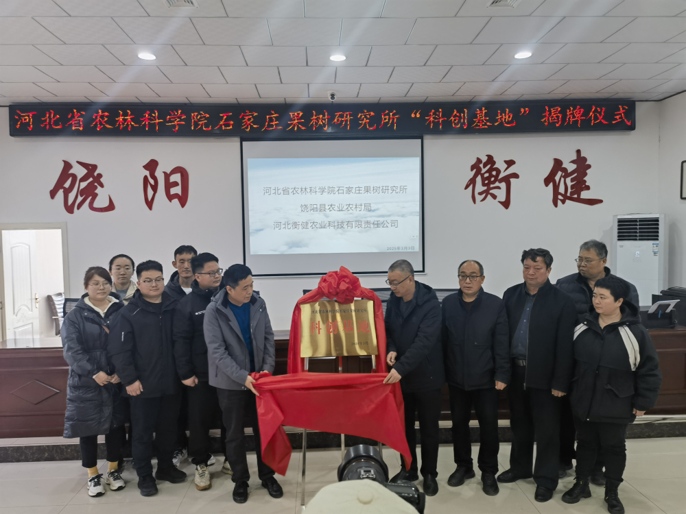 2025年3月3日,我所2024年度新入職人員基地實習正式拉開帷幕,以此為契機,我所“科創(chuàng)基地”在饒陽縣衡健農(nóng)業(yè)公司正式揭牌,饒陽縣農(nóng)業(yè)農(nóng)村局相關(guān)領(lǐng)導出席揭牌儀式??苿?chuàng)基地的設(shè)立,標志著我所向著推動果樹產(chǎn)業(yè)高質(zhì)量發(fā)展邁出了堅實一步,將在成果示范、科技服務(wù)和人才培養(yǎng)等多方面發(fā)揮關(guān)鍵作用,為果樹產(chǎn)業(yè)發(fā)展注入新動力。