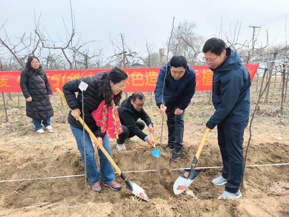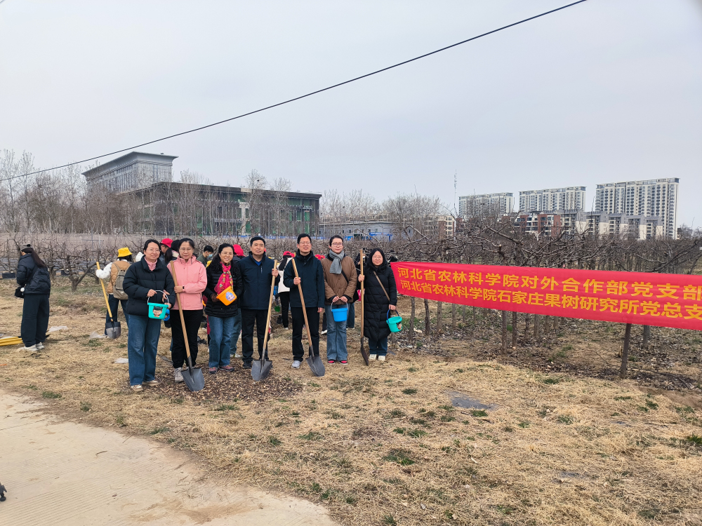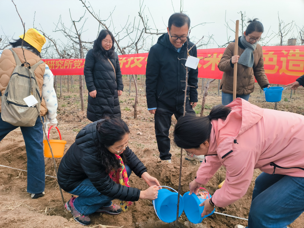 春風(fēng)輕拂,大地回暖,2025年3月15日,所黨總支與院對(duì)外合作部黨支部在我所開展“科技引領(lǐng)未來(lái) 綠色造福后代”植樹活動(dòng)。親手種下一棵樹苗,培土、澆水,看著它在春風(fēng)中扎根,是一次親近自然的奇妙體驗(yàn),更是一次責(zé)任與擔(dān)當(dāng)?shù)嫩`行。栽下的一棵棵小樹苗,為大地增添了一抹新綠,為人類創(chuàng)造一個(gè)更清新的環(huán)境,為子孫后代留下一片美麗的家園。這次植樹活動(dòng),地點(diǎn)選擇在我所梨研究室試材地,樹種為梨的雜交苗。支部成員在親手體驗(yàn)植樹的挖坑、培土、提苗、澆水細(xì)節(jié)中,與科技人員交流、了解果樹知識(shí)。恰逢石家莊廣播電視臺(tái)組織的“用綠色播種未來(lái) 讓城市聽見童聲”兒童城市實(shí)踐活動(dòng)開展,現(xiàn)場(chǎng)好不熱鬧。