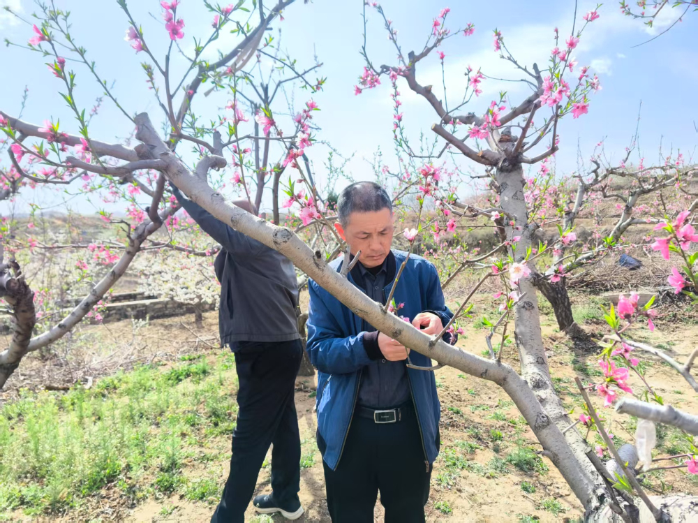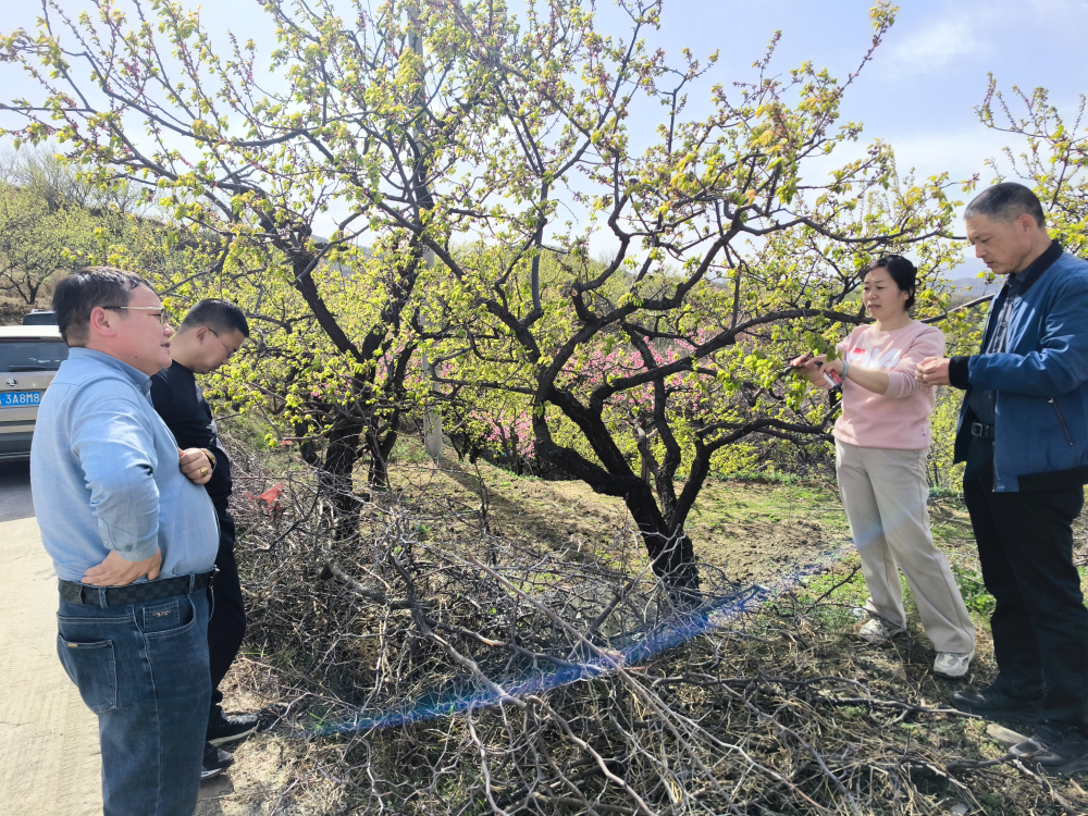 土門鄉(xiāng)政府相關人員陪同果樹霜凍調查工作。