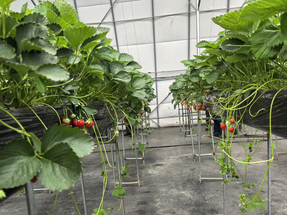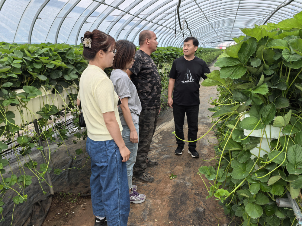 2025年6月26日,我所草莓團(tuán)隊(duì)邀請(qǐng)中國(guó)園藝學(xué)會(huì)草莓分會(huì)理事長(zhǎng)、北京市農(nóng)林科學(xué)院林業(yè)果樹(shù)研究所草莓研究室主任孫健一行來(lái)到我所崇禮區(qū)草莓基地-莓好生態(tài)科技有限公司(莓好莊園)調(diào)研指導(dǎo)。專家一行實(shí)地查看并品鑒自育夏秋草莓品種‘冀香’。‘冀香’是楊雷團(tuán)隊(duì)培育的草莓新品種之一,在冷涼區(qū)作為夏秋草莓栽培,成熟期早、產(chǎn)量高。莓好莊園在2024年與我所簽訂了草莓新品種‘冀香’的品種經(jīng)營(yíng)權(quán)轉(zhuǎn)讓協(xié)議,獲得了‘冀香’在河北省的獨(dú)家經(jīng)營(yíng)權(quán)。目前‘冀香’正值掛果期,植株長(zhǎng)勢(shì)好,果實(shí)外形漂亮,酸甜可口,香味濃郁,其品質(zhì)表現(xiàn)優(yōu)于現(xiàn)行的主栽美國(guó)四季品種‘蒙特瑞’。孫健理事長(zhǎng)一行對(duì)‘冀香’給予了好評(píng)及認(rèn)可,同時(shí)針對(duì)夏季如何進(jìn)行草莓肥水管理、植株管理、提高品質(zhì)等方面給出了合理的建議。