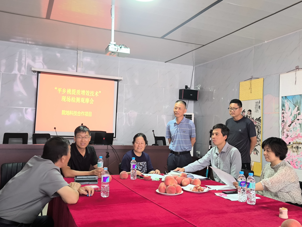 2025年7月18日,我所就承擔(dān)的院地科技合作項(xiàng)目“平鄉(xiāng)桃提質(zhì)增效技術(shù)”,在邢臺(tái)市平鄉(xiāng)桃基地召開現(xiàn)場(chǎng)檢測(cè)觀摩會(huì),會(huì)議邀請(qǐng)了省農(nóng)業(yè)農(nóng)村廳特色產(chǎn)業(yè)技術(shù)指導(dǎo)總站劉敏彥研究員、河北科技師范學(xué)院武軍凱教授、邢臺(tái)市農(nóng)業(yè)科學(xué)研究院李林英研究員作為專家進(jìn)行現(xiàn)場(chǎng)檢測(cè),平鄉(xiāng)縣董輝副縣長(zhǎng)、農(nóng)業(yè)農(nóng)村局鄭曉娜局長(zhǎng)及石家莊果樹研究所、平鄉(xiāng)桃基地有關(guān)人員出席參加。