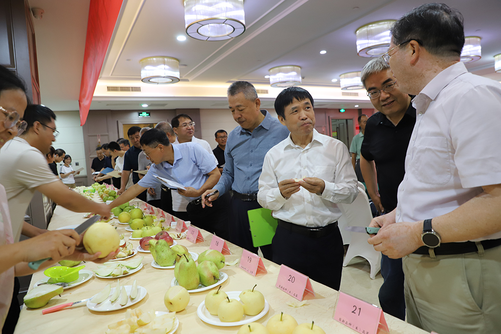 會(huì)議期間,與會(huì)專家學(xué)者對(duì)全國(guó)15家育種單位選送的58個(gè)梨新品種(系)進(jìn)行了鑒評(píng)。鄧秀新教授與張紹鈴教授分別作了專題學(xué)術(shù)報(bào)告:鄧秀新教授以《果樹(shù)產(chǎn)業(yè)發(fā)展趨勢(shì)與未來(lái)五年的建議》為題,從果樹(shù)品種創(chuàng)新、育種技術(shù)突破、育種發(fā)展規(guī)律等核心維度深入剖析產(chǎn)業(yè)現(xiàn)狀,為未來(lái)果樹(shù)產(chǎn)業(yè)高質(zhì)量發(fā)展提供前瞻性的指導(dǎo)建議;張紹鈴教授在《淺談果樹(shù)科技創(chuàng)新與產(chǎn)業(yè)應(yīng)用融合的體會(huì)及案例》報(bào)告中,創(chuàng)新性提出“以應(yīng)用為導(dǎo)向、以需求定課題”“基于應(yīng)用場(chǎng)景驅(qū)動(dòng)的有組織科研” 等果樹(shù)科研新理念,為破解“科研與產(chǎn)業(yè)脫節(jié)” 難題提供新思路。