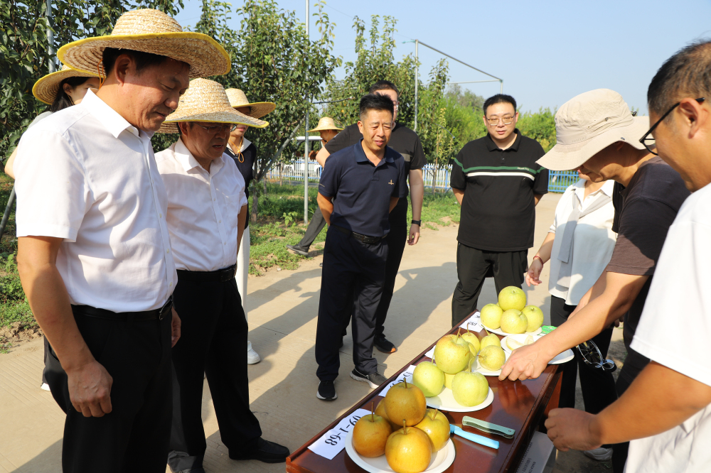 高一雷一行參觀了我所科技文化展廳,全面了解研究所發(fā)展歷史、創(chuàng)新成果、科技服務(wù)、黨建文化等工作。參觀了果樹根系觀測系統(tǒng)科研平臺,實(shí)地考察了棗、梨、桃、蘋果育種、葡萄示范園區(qū),著重調(diào)研了種質(zhì)資源保護(hù)與利用現(xiàn)狀、自主培育品種成果、產(chǎn)業(yè)難題等。高一雷充分肯定了石果所育種工作,對自育品種品質(zhì)給予了高度評價。