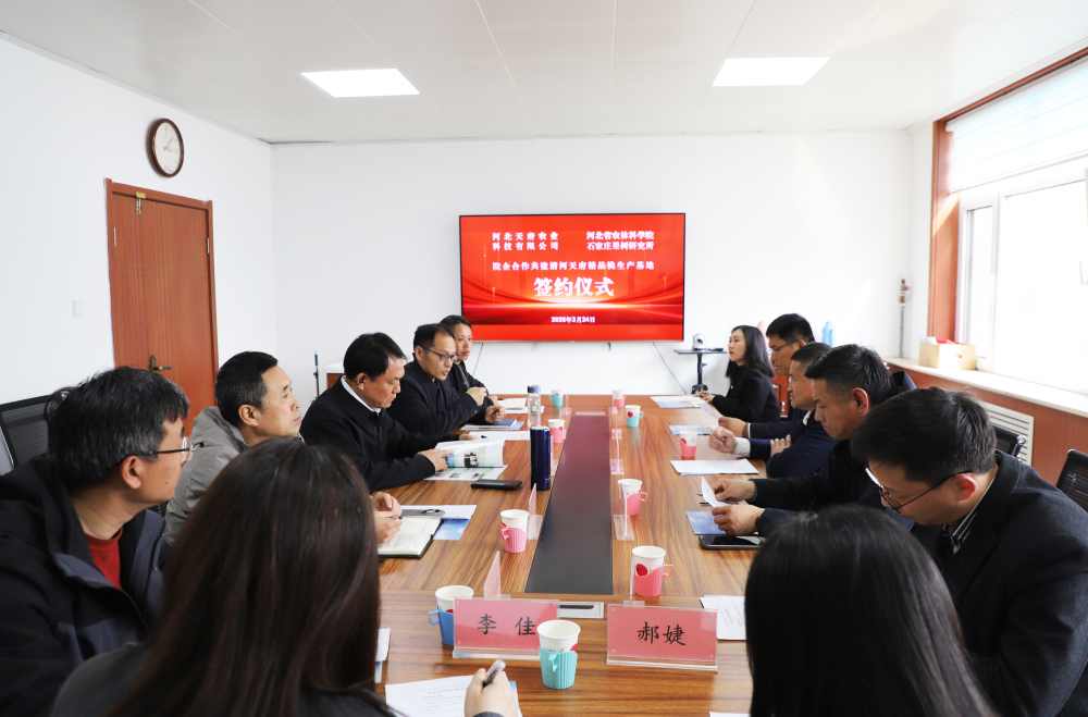 為深入學(xué)習(xí)貫徹習(xí)近平總書(shū)記重要指示精神和黨中央決策部署,精準(zhǔn)對(duì)接農(nóng)業(yè)企業(yè)科技需求,全力服務(wù)全省農(nóng)業(yè)農(nóng)村現(xiàn)代化,持續(xù)提升科技成果轉(zhuǎn)化效能,2026年3月24日下午,我院與河北天府農(nóng)業(yè)科技有限公司合作簽約儀式在我所成功舉行。河北省農(nóng)林科學(xué)院、河北天府農(nóng)業(yè)科技有限公司、河北省農(nóng)民合作社行業(yè)協(xié)會(huì)等單位領(lǐng)導(dǎo)和負(fù)責(zé)同志參加。